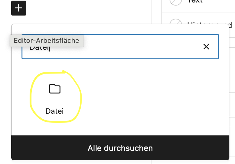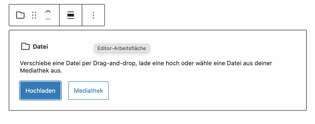 Wenn du den Datei-Block einfügst, erscheint eine Werkzeugleiste über dem Block